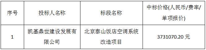 三、标段(包)名称:北京泰山饭店空调系统改造项目